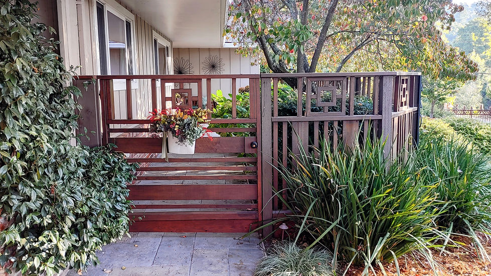 Ancient old growth fence redwood readily comes back to new life,keeping the goats ready for company, but away from the potted plants on the patio.